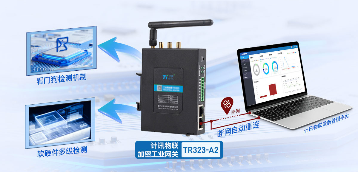 计讯物联5G加密工业网关 TR323-A2,具备加密、认证和数据防篡改能力,支持国密软硬件加密,支持SM1、SM2、SM3、SM4算法,支持IPsec VPN加密,支持APN/VPDN数据安全传输,符合GM/T 0022-2014《IPSec VPN技术规范》,支持CA证书,全方位保障数据安全传输。